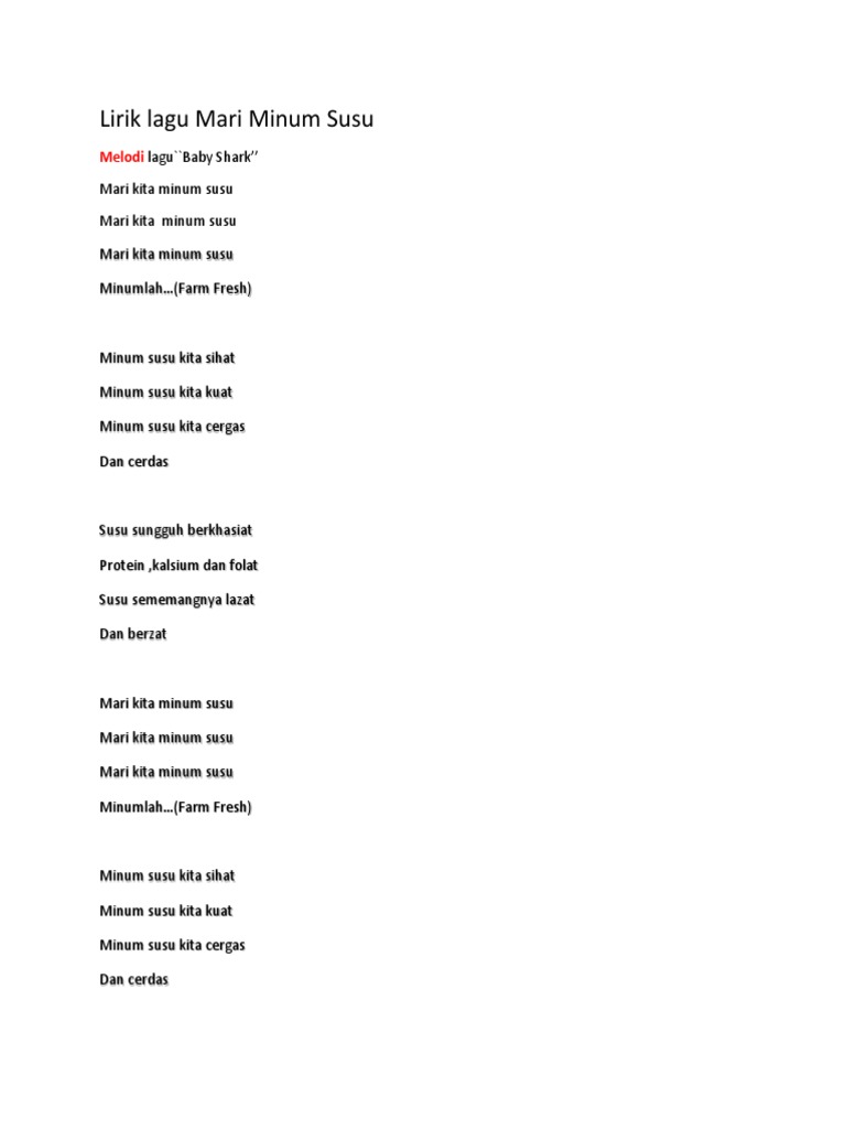 Lirik Lagu Mari Minum Susu Pdf